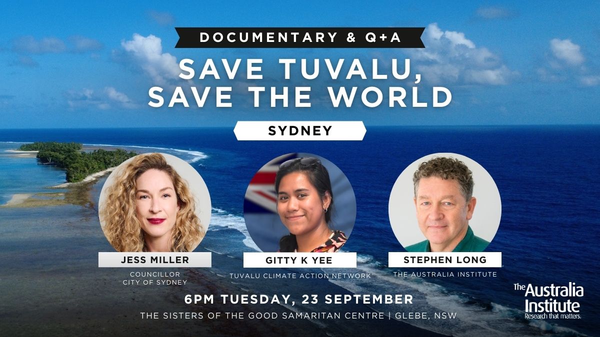 This documentary presented by Walkley Award winning journalist and former ABC 4 Corners reporter Stephen Long, Save Tuvalu, Save the World, will be screened, with a Q&A featuring City of Sydney Councillor Jess Miller, Stephen Long and climate campaigner and Tuvalu resident Gitty K Yee to follow.